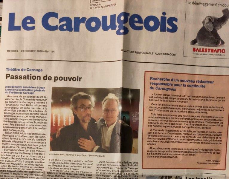 23 octobre 2025: Pour connaitre les petites et grandes histoires de Carouge, lisez le Carougeois. CHF 3.- le numéro