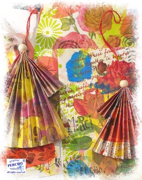 Ange des fleurs. Papiers qui se collaient dans des albums dans les années 50-60 sauf erreur et enrobés de mes couleurs pour donner vie à des anges fleuris.