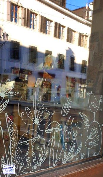 Un panneau double face en carton réalisé pour Samia, de la Boutique La Porte, à la Rue Ancienne. Des cyclistes et trottinettes descendent à toute allure sur le trottoir sans tenir compte des piétons. Espérons qu'ils respectent!